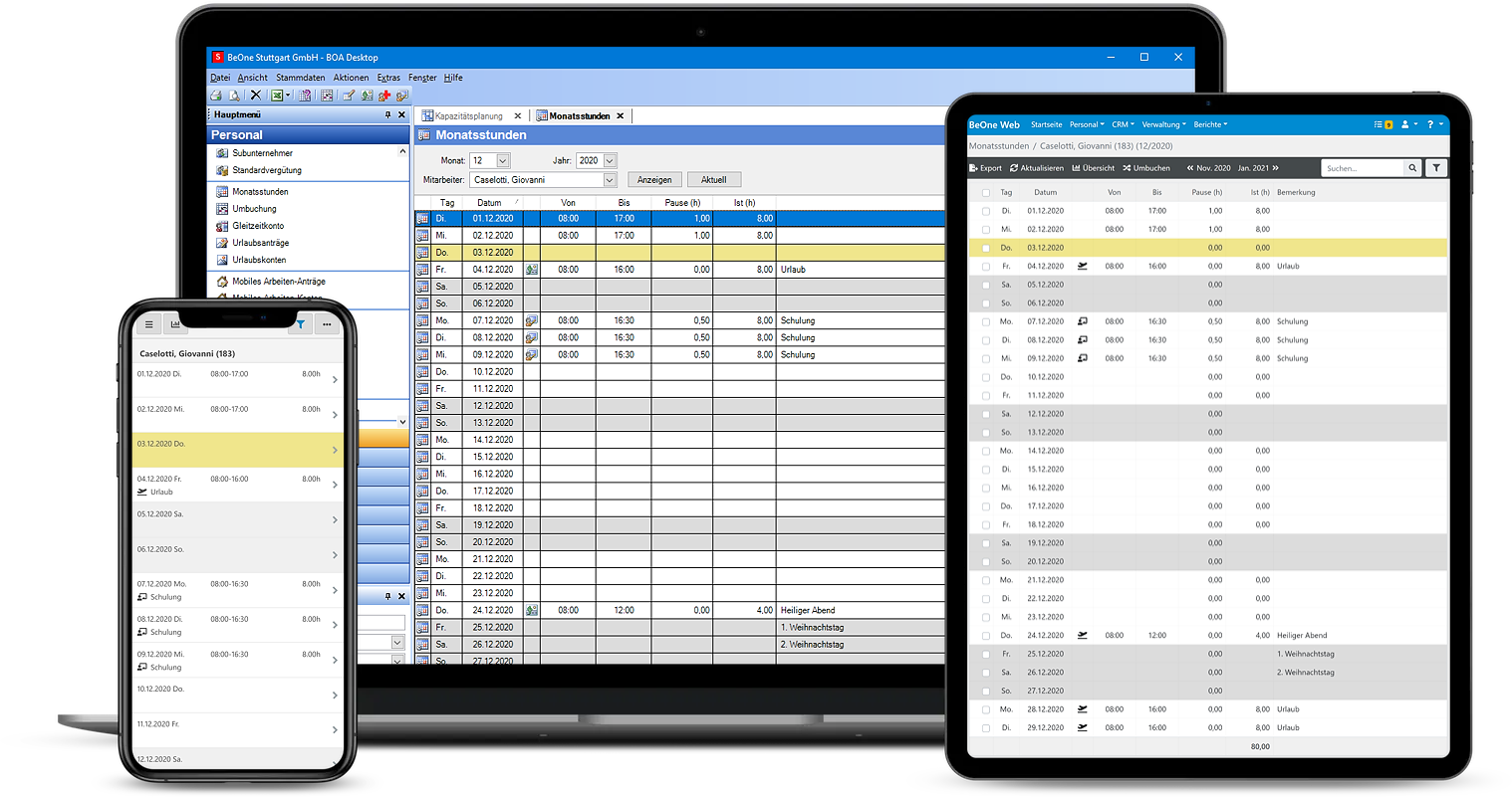 Erfassen von Arbeitszeiten, Reisekosten, Urlaubsanträgen uvm. direkt über den Browser / das Tablet