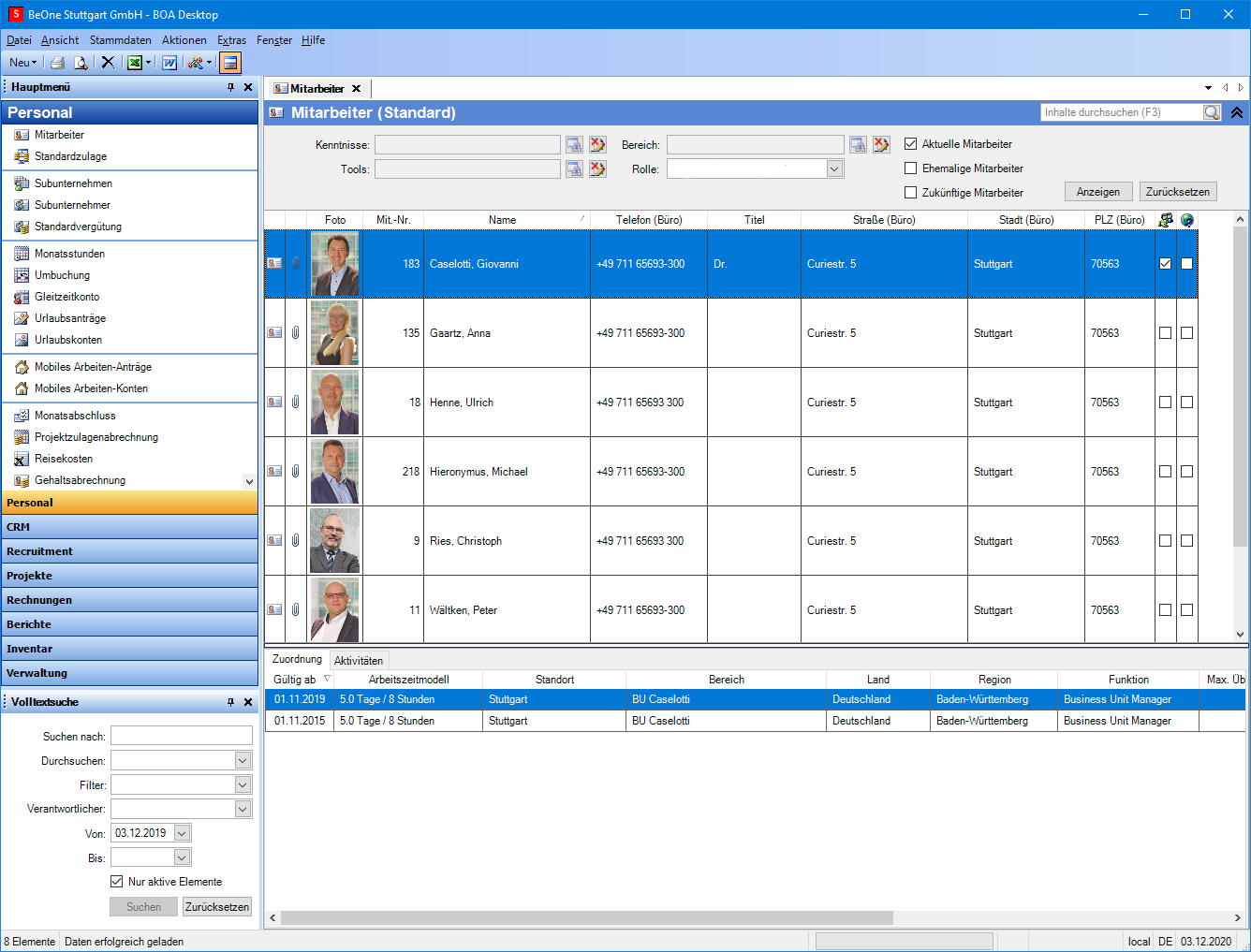 Personaldaten, Gehälter, Zulagen, Urlaubsanspruch, Abwesenheiten, Bereichszuordnungen uvm.